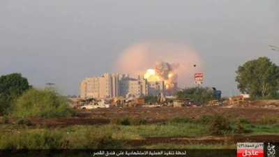 واشار المصدر إلى ان سيارة مفخخة تمكنت من تجاوز البوابة الرئيسية لتنفجر بداخل الفندق لاحقا .