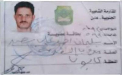 ونشرت مصادر إعلامية بطاقة أحد الجناة وهو من عناصر مليشيات هادي "ما تسمى المقاومة الجنوبية" في عدن، منطقة كابوتا.