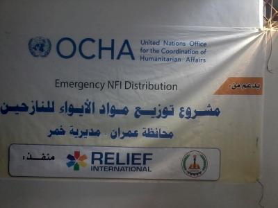 مشيرا ان مواد الايواء التي يتم توزيعها تاتي في اطار الاعمال الطارئة لتوفير الايواء للنازحين في محاظة عمران .