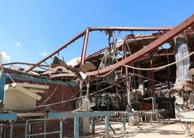 ثم عاد إبراهيم إلى المصنع لاحقاً وقد انبعثت منه أعمدة الدخان وأصبح كومة من الأنقاض لا سيما القسم الذي يضم الماكينات الثقيلة المستخدمة في تسخين الخزف وكبسه حيث أتت الضربة عليها ودمرتها بالكامل.