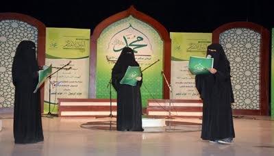 صعدة برس-متابعات - أقيمت اليوم على خشبة المسرح الثقافي بصنعاء فعالية نسوية احتفائية بالمولد النبوي الشريف، ضمن فعاليات المهرجان الثاني للرسول الأعظم للإبداع الثقافي الذي تنظمه مؤسسة الهادي الثقافية تحت شعار " ليخرجكم من الظلمات إلى النور ".