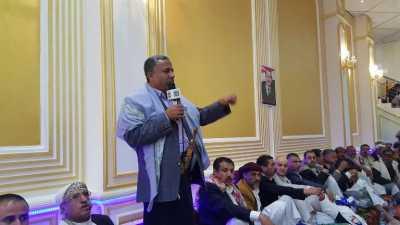 وخاطب الحاضرين: أؤكد لكم ان قيادة المؤتمر ممثلة بالزعيم علي عبدالله صالح واللجنة العامة والأمانة العامة وأحزاب التحالف سيظلون الى جانبكم وفي اوساطكم ولن نتزحزح عن قيمنا وأخلاقنا ومبادئنا وثوابتنا في المؤتمر الشعبي العام ولا يستطيع احد ان يزحزحنا عن هذه الثوابت وهي الله والوطن والثورة والجمهورية والوحدة ،مؤكدا ان المؤتمر سيظل متمسكا ومدافعا عن وحدة الثاني والعشرين من مايو ومن يحاول ان يمزق وحدة الوطن سيجر اذيال الخيبة”.