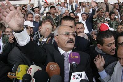 صعدة برس-متابعات - حيا الزعيم علي عبدالله صالح رئيس الجمهورية السابق رئيس المؤتمر الشعبي العام الحشود الملايينية التي حضرت ميدان السبعين اليوم كما حيا قيادة المؤتمرالشعبي العام وكل المؤتمريين على ما بذلوه من جهد في انجاح هذا الحشد الملاييني .