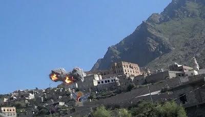كما شنت طائرات العدوان غارتين على منطقة حنة بمديرية الوازعية ما اسفر عن تضرر العديد من المنازل والممتلكات العامة والطرق كما شنت اربع غارات على جبل الهان بمنطقة الضباب غربي مدينة تعز.