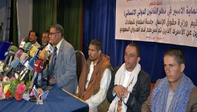 وقال الأسرى " يوجد عدد من اليمنيين المقيمين في السعودية بينهم ثلاثين طفلاً محتجزين داخل قاعدة خميس مشيط بتهمة زرع الألغام على الحدود والعمل في المجال الاستخباراتي "،