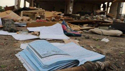 وبين أن طيران العدوان استهدف مدرستي العلم والإيمان والشهيد الوزير بمديرية بني حشيش ومسجد حضران ومستشفى ومركز غضران الصحي و تدمير ستة منازل وتضرر 16 منزل وعشرات الهكتارات من مزارع الأعناب .