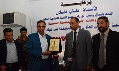 وخلال التدشين أعلن القائم بأعمال رئيس الوزراء طلال عقلان عن منح وكالة الأنباء اليمنية (سبأ) درع رئاسة الوزراء تكريما للخدمات الوطنية الكبيرة التي تقدمها، ولرسالتها الإعلامية الوطنية، وصمودها أمام العدوان السعودي الأمريكي، فيما أهدى رئيس مجلس إدارة الوكالة ضيف الله الشامي مجموعة من إصدارات الوكالة المتعلقة بالعدوان إلى القائم بأعمال رئيس الوزراء.