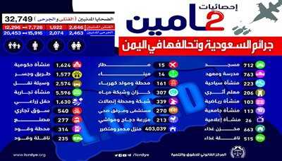 صعدة برس -متابعات - أكد المركز القانوني للحقوق والتنمية أن عامين من العدوان السعودي الأمريكي على اليمن نتج عنه استشهاد وإصابة 32 ألف و749 بينهم نساء وأطفال.