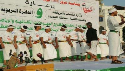 صعدة برس -متابعات - اختتمت بمحافظة الحديدة أمس الفعاليات الرياضية والثقافية التي نظمتها السلطة المحلية ومكتب الشباب والرياضة بالمحافظة والدائرة التربوية لانصار الله على مدى شهرين بمرور ألف يوم من الصمود في مواجهة العدوان.