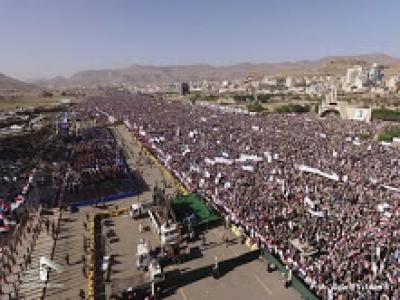 وقال " أقف اليوم إجلالاً وإكباراً لكم، فرغم الظروف الاقتصادية الصعبة والمعاناة الشديدة التي فرضها العدوان على الجميع إلا أن هذا الحضور المشرف يبعث بكل وضوح رسائل العزة والعظمة والثبات لكل العالم، ويعبر عن ثقة الشعب اليمني بالنصر المستحق بموجب وعد الله الصادق في قوله تعالى: أُذِنَ لِلَّذِينَ يُقَاتَلُونَ بِأَنَّهُمْ ظُلِمُوا، وَإِنَّ اللَّهَ على نَصْرِهِمْ لَقَدِيرٌ".