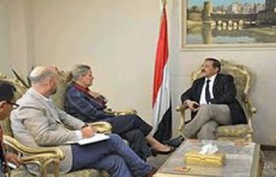 وتناول اللقاء نتائج زيارة المنسق المقيم إلى محافظة الحديدة والتأكيد على أهمية السماح بدخول السفن المحملة بالبضائع التجارية والمواد الغذائية بمختلف أنواعها عبر ميناء الحديدة، الذي يغطي احتياجات أكثر من 80% من المواطنين.