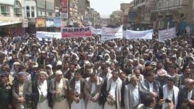صعدة برس - نٌظمت بمدينة عمران اليوم مسيرة جماهيرية حاشدة غاضبة تنديدا بمجزرة العدوان الأمريكي السعودي التي أٌرتكبت ضد أبناء مدينة عمران يوم أمس، مخلفة عشرات من الشهداء والجرحى.