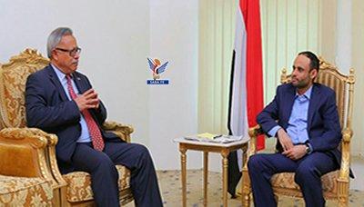 وتطرق اللقاء إلى جهود حكومة الإنقاذ الوطني في تخفيف معاناة الشعب اليمني وتحسين مستوى الخدمات المقدمة للمواطنين والتغلب على الصعوبات التي تواجه سير العمل وبما يعزز من الصمود في مواجهة العدوان.