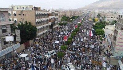 واستنكرت الحشود الجماهيرية استمرار تحالف العدوان في استهداف الاقتصاد الوطني والتلاعب بالعملة الوطنية وارتفاع الدولار بهدف زيادة معاناة الشعب اليمني.