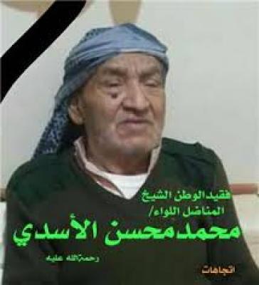 صعدة برس - ينعى المستشار السياسي والاعلامي الزميل /أحمد احمدمهدي الاسدي _ ينعى زعيم المناضلين وشيخ الاحرار وأسد الثوار الجمهوريون السبتمبريون والاكتوبريون في اليمن الشيخ المراغة والمناضل اللواء/محمد محسن الاسدي عميد مستشاري محافظة ذمار وكبير مشايخ قبائل بني أسد..