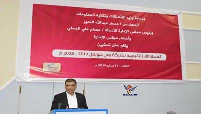 وأكد وزير الاتصالات وتقنية المعلومات المهندس مسفر عبد الله النمير دعم الوزارة لشركة يمن موبايل وجميع شركات الهاتف المحمول بما يؤهلها لمواكبة التطور التكنولوجي في عالم الاتصالات.