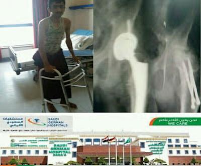 وانه فور قدومه الى المستشفى السعودي الألماني بصنعاء للعلاج فقد تم عرضه على الفريق الطبي المتخصص لقسم العظام بالمستشفى وبدوره قام الفريق الطبي بدراسة حالته وتشخيصها بدقه وبتقييمها واتخاذ القرار..