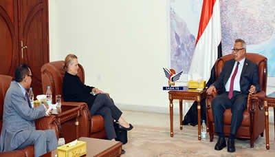 صعدة برس - التقى رئيس مجلس الوزراء الدكتور عبدالعزيز صالح بن حبتور، اليوم الممثلة المقيمة للأمم المتحدة منسقة الشؤون الإنسانية لدى اليمن ليز غراندي.