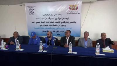 وفي الختام كرم وكيل الوزارة المساعد عبدالسلام الحكيمي ومنسق برنامج المياه والصرف الصحي والإصحاح البيئي في المنظمة الدولية للهجرة ماريسيو تيتيوتف ومدير عام المؤسسة المحلية للمياه والصرف الصحي بمحافظة حجة أمين المغلس المشاركين بالشهادات التقديرية.