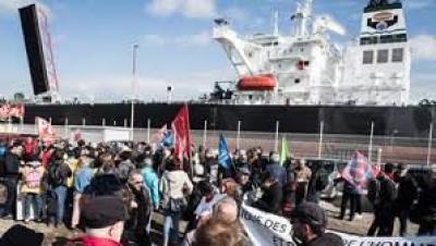 وكانت تظاهرة في ميناء لوهافر الفرنسي نجحت الشهر الماضي في منع سفينة سعودية من شحن أسلحة فرنسية متطورة، وأجبرتها على مغادرة الميناء خالية الوفاض.