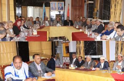وقد بدأ الاجتماع بقراءة الفاتحة على روحي الراحلين الزعيم علي عبدالله صالح ورفيقه الامين عارف الزوكا وكل شهداء الوطن الذين سقطوا جراء العدوان الغاشم.