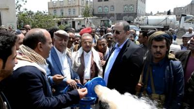 صعدة برس - افتتح وزيرا المياه والبيئة المهندس نبيل عبدالله الوزير ووزير الدولة لشؤون مجلسي النواب والشورى الدكتور علي أبو حليقة ومحافظ إب عبدالواحد صلاح، السبت، مشروع تركيب منظومة طاقة شمسية ومضخات غاطسة لأربع آبار مياه في مدينة يريم بتمويل من البنك الدولي عبر صندوق اليونيسف.