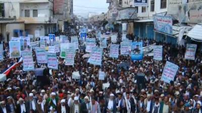 وأكد المتظاهرون الصمود في وجه العدوان، مطالبين دول التحالف إيقاف عدوانها ورفع حصارها على اليمن، منديين بموقف المجتمع الدولي والأمم المتحدة الصامت تجاه جرائم العدوان منذ خمس سنوات بحق الشعب اليمن.