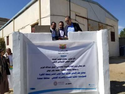 ووضع وزير المياه والبيئة ومحافظ صعدة، حجر الأساس لمشروع إنشاء مبنى المختبر ومحطة الكلورة للمؤسسة المحلية للمؤسسة المحلية للمياه والصرف الصحي بصعدة.