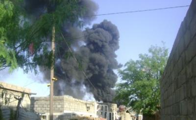 وتسببت أعمال قصف عشوائية قال سكان محليون بمديرية ان عناصر الجماعات المسلحة التي تدعي انتمائها لتنظيم القاعدة ضد مساكن الأهالي بلودر بالحاق اضرار بالغة بمسجد صباحا واحتراق منزل مواطن قبل دقائق من الان.