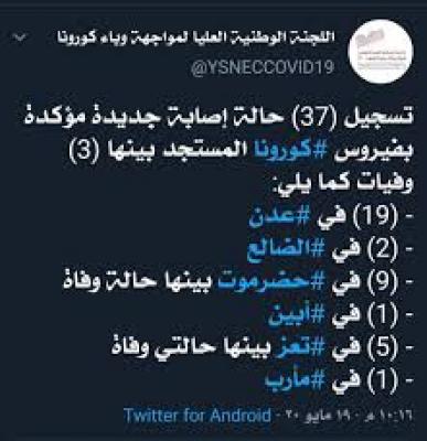 في هذه المحافظات.. تسجيل 37 حالة مؤكدة بفيروس كورونا بينها 3 وفيات وارتفاع الحالات إلى (169)..