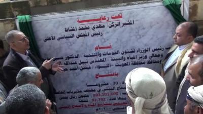صعدة برس-متابعات - افتتح نائب رئيس الوزراء لشؤون الخدمات والتنمية الدكتور حسين مقبولي ووزير المياه والبيئة المهندس نبيل عبدالله الوزير ووزير الدولة نبيه أبو نشطان ومحافظ المحويت فيصل حيدر اليوم 30 مشروعا في مجال المياه والإصحاح البيئي بالمحويت بتكلفة إجمالية 803 مليون و103 آلاف ريال.