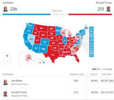 وبالنظر إلى أن بايدن يملك للآن 253 صوتا بالمجمع الانتخابي مقابل 213 لترامب، وفقا لمؤشر CNN فإن ما ينقصه هو 17 صوتا فقط أي أنه إذا فاز في ولاية بنسيلفانيا التي تمنح 20 صوتا بالمجمع الانتخابي فإن ذلك سيخوله من الوصول وتجاوز خط الـ270 صوتا المطلوبة للفوز بالانتخابات.