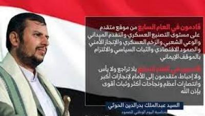 وقال السيد عبدالملك بدرالدين الحوثي في كلمة بمناسبة اليوم الوطني للصمود،” قادمون في العام السابع من موقع متقدم على مستوى التصنيع العسكري والتقدم الميداني والوعي الشعبي والزخم العسكري والإنجاز الأمني والصمود الاقتصادي والثبات السياسي والالتزام بالموقف الإيماني”.