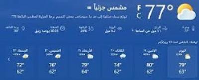 كما يُتوقع هطول أمطار متفاوتة الشدة مع رياح هابطة تعمل على إثارة الأتربة على المناطق الصحراوية لمحافظات المهرة، حضرموت، شبوة، مارب والجوف.