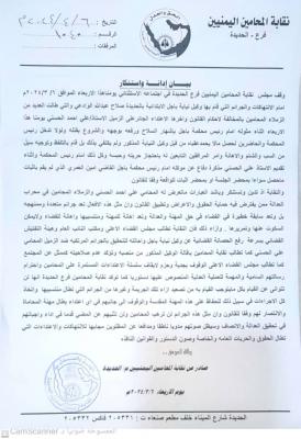 صادر عن نقابة المحامين اليمنيين م/ الحديدة يوم الاربعاء ٢٠٢٤/٣/٦م |