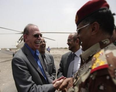 وقال إن جزءاً من المساعدات سيخصص لجهود إعادة البناء في أبين وهذه أول زيارة لمسؤولين أمريكيين إلى مناطق ملتهبة سيطر عليها تنظيم القاعدة لأكثر من عام.