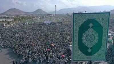 وخلال المسيرة، أشار مفتي الديار اليمنية العلامة شمس الدين شرف الدين، إلى أن الشعب اليمني كان في طليعة من ينتصر لكتاب الله، ومن يقف ضد الأعداء.