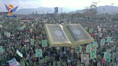 بحشودهم المليونية خرج اليمنيون في مسيرات في العاصمة صنعاء والمحافظات حاملين في أيديهم المصحف الشريف، وأشهروا أسلحتهم في وجه العدو الصهيوني الأمريكي، محذرين من عواقب إساءته المتكررة لأقدس المقدسات الإسلامية "القرآن الكريم".