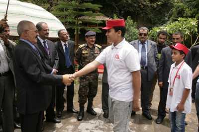 صعدة برس - استقبل الزعيم علي عبد الله صالح اليوم بعثتي نادي اتحاد أب وشعب أب بطل الدوري اليمني للموسم 2011 – 2012 .