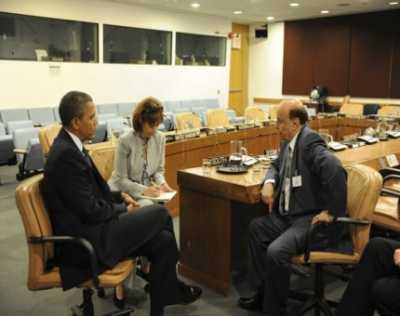 وصرح بين رودس نائب مستشار الأمن القومى الأمريكى للصحفيين أن أوباما دخل إلى اجتماع كان يعقد بين الرئيس اليمنى وكبير مستشارى البيت الأبيض لمكافحة الإرهاب جون برينان بعد إلقاء كلمته فى الأمم المتحدة.