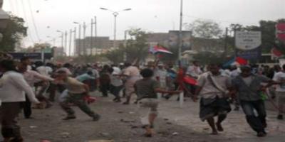 وقالت مصادر أمنية " إن المواجهات اندلعت بين مشاركين في مسيرتين إحداهما للتجمع اليمني للاصلاح وأخرى للحراك الجنوبي بالقرب من ساحة احتجاجات تابعة للاصلاح وسط ساحة البنوك بكريتر". |
