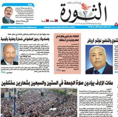 وبدء موظفو وصحفيو وفنيو مؤسسة الثورة للصحافة والطباعة والنشر إضراباً شاملاً عند الساعة الثانية من ظهر أمس الأحد 30 سبتمبر .