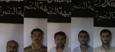 وكانت جماعة تطلق على نفسها "جبهة النصرة"، بثت مقطع فيديو على موقع "يوتيوب"، ويظهر فيه الضباط الـ5، وابتدأ المقطع وهو من إنتاج شركة اسمها "المنارة البيضاء"؛ بنشر صور للضباط، وبرفقة آية الحرابة القرآنية، في إشارة واضحة للتهديد بقتلهم، ومن ثم أتبعت ذلك بنشر صور لجوازات سفرهم اليمنية، وصور أخرى لهم قالت إنها مع ضباط سوريين.