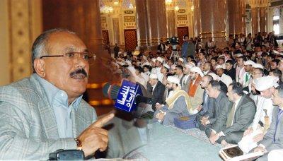 وأردف فخامته:" وكذلك الحال عندما تحرك الانفصاليون في 93 و 94 في محاولة للعودة بالوطن إلى ماقبل 22 مايو ووقف الشعب وقفة رجل واحد وافشل هذا المخطط وهذا من نعم الله أيضا، وعندما أُشعلت فتنة صعدة وقف شعبنا وجيشه البطل والقادة والسياسيين المخلصين وافشلوا مخطط ما يسمى بعودة الإمامة من محافظة صعدة، فهذه مخططات أفشلها الشعب من خلال وعي الشعب وتعلمه وبفضل العلماء والشباب المخلصين الواعين.