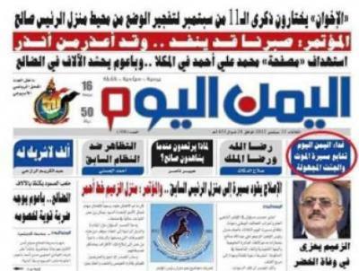 صعدة برس - صادر أفراد تابعون لجهاز الأمن السياسي صحيفة اليمن اليوم ومنعوا وصولها إلى مدينة المكلا عاصمة محافظة حضرموت (شرق اليمن) عل خلفية هجومها على اللواء علي محسن الاحمر..