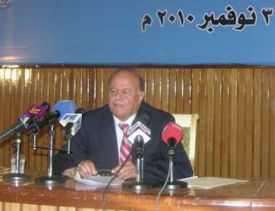 وعبر هادي عن اسفه لعدم ادراك البعض في الداخل خاصة في احزاب اللقاء المشترك حجم التحديات التي تواجه اليمن في هذا الجانب وتجعل من قضية الارهاب مجال للمزايدة والتكتيكات السياسية والإساءة لليمن وسمعته ، مشيرا الى انهم في المشترك يظنون انهم بذلك يسيئون للنظام في الوقت الذي هم يسيئون فيه لليمن ولمصالح أبنائه وكان من المفروض ان يصطف الجميع في جبهة واحدة لان هناك تامر داخلي وخارجي على اليمن.