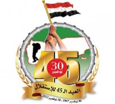 صعدة برس - غطت سماء مدينة عدن اليوم أسراب من الحمام الزاجل التي لونت أجنحتها بأعلام الجمهورية اليمنية في العيد الـ45 للاستقلال في جنوبي اليمن .