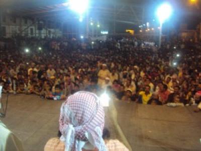 يحيى الفنان القدي علي صالح اليافعي السهرة الفنية وعدد من الفنانيين الجنوبيين فيما الأغاني الثورية تشعل حماس الجماهير الغفيرة الذين تتحدث عنهم الصور في ساحة المنصورة .