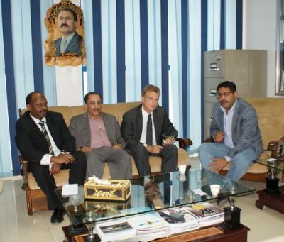 صعدة برس - التقى الدكتور عبد الجليل الشعيبي رئيس المنطقة الحرة عدن بمكتبة صباح يوم الأربعاء الموافق 15/12/2010م السيد اندرياس هيرجنروتر مفوض الصناعة والتجارة الألمانية لدى المملكة العربية السعودية والجمهورية اليمنية والوفد المرافق .