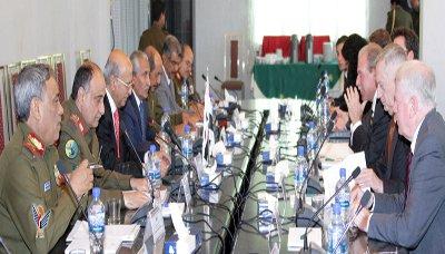 وفي الجلسة التي رأسها عن جانب بلادنا وزير الدفاع اللواء الركن محمد ناصر احمد ووزير الداخلية اللواء دكتور عبدالقادر محمد قحطان ووزير الخارجية الدكتور ابو بكر القربي ورئيس هيئة الأركان العامة اللواء الركن احمد علي الأشول ومن الجانب الأمريكي نائب وزير الخارجية الأمريكي السيد شبيرو وقائد القوات الأمريكية في القيادة المركزية الجنرال جيمس مايش، جرى استعراض الجهود الدولية المبذولة لإنجاح التسوية السياسية في اليمن وما يقدمه الأصدقاء الأمريكان من دعم ومساندة في هذا الاتجاه. حسب وكالة الأنباء اليمنية سباء.